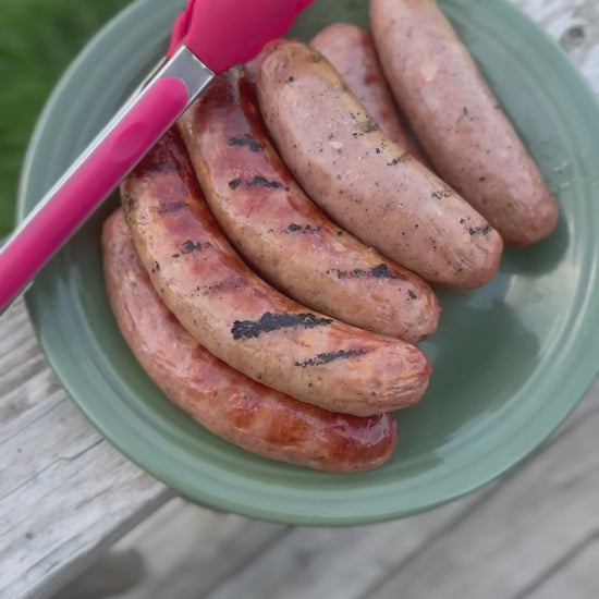Old World Polish Sausage – $12 Our signature heritage link, honoring the Eastern European roots of the Mangalitsa pig. Originating in 19th-century Hungary and beloved across Central Europe, the Mangalitsa was bred for its luxurious marbling and lard-rich depth. This Polish recipe celebrates that legacy: coarsely ground Mangalitsa pork seasoned with authentic Old World spices. Tender, juicy, and full of history — this sausage connects today’s table to the heritage of the “Wagyu of Pork.” (4 per pack, smoked & fully cooked)